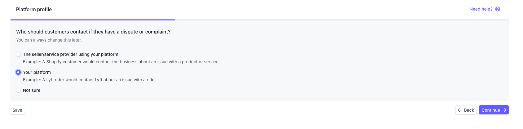 You should first follow the regular instructions to setup Stripe in your Sharetribe marketplace. When enabling Stripe Connect and registering your Platform, you may be prompted with some additional questions. The steps 1-4 show examples of what kind of questions you may be asked during the registration process.