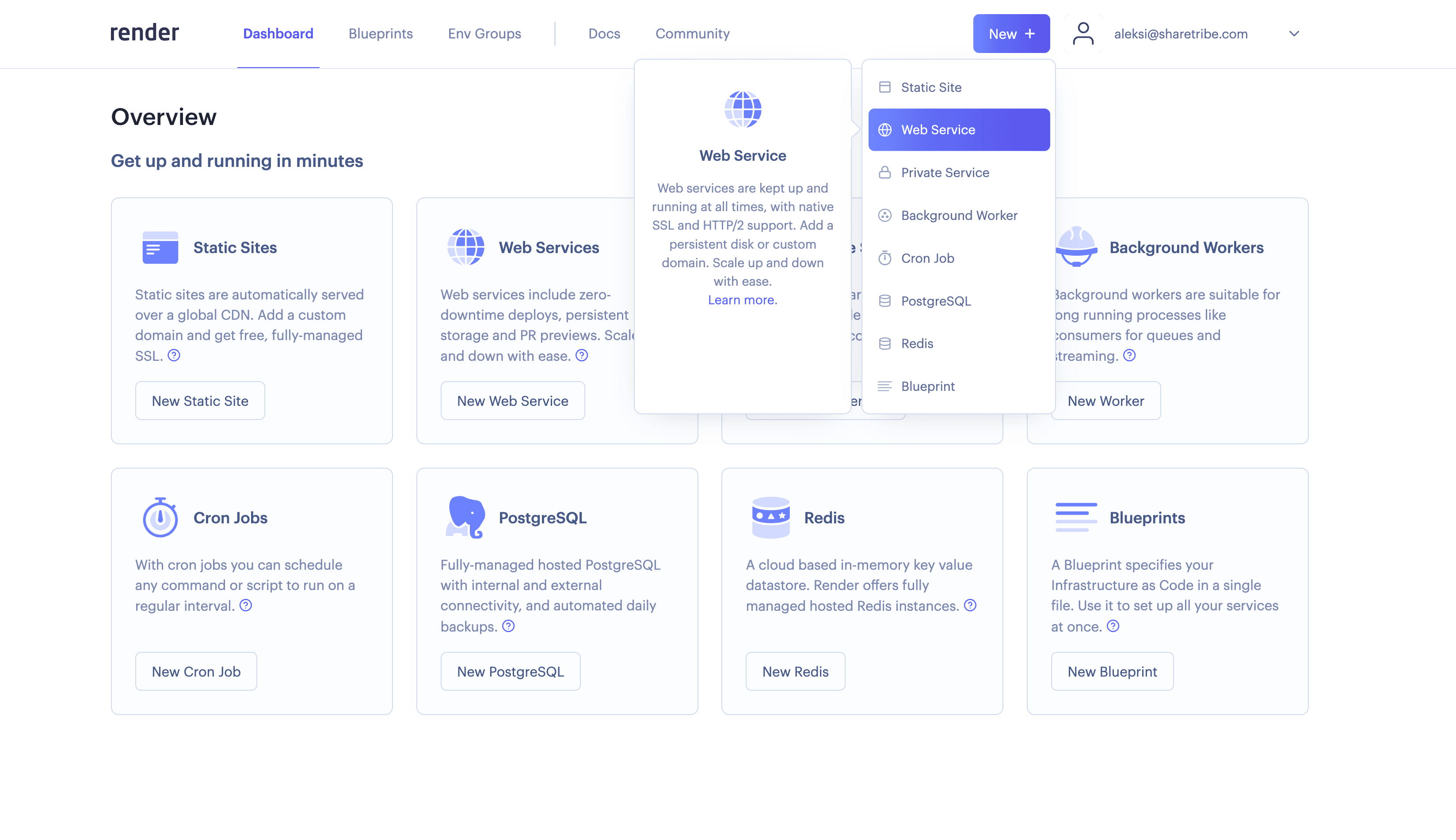 This section provides a step-by-step guide on how to deploy your marketplace to Render. You can also deploy your marketplace on another cloud hosting platform, but we suggest using Render as it provides a free tier and is quick and easy to set up.